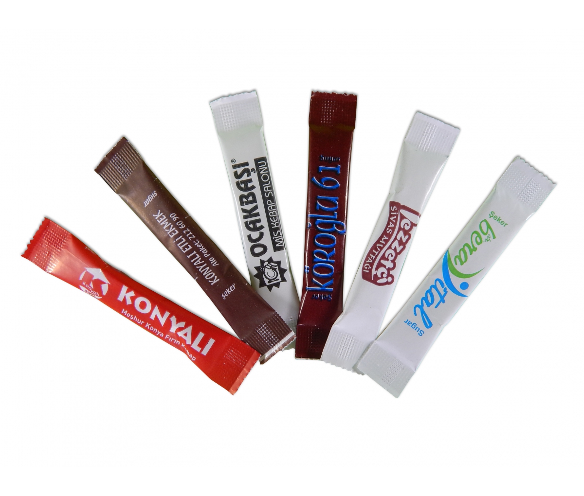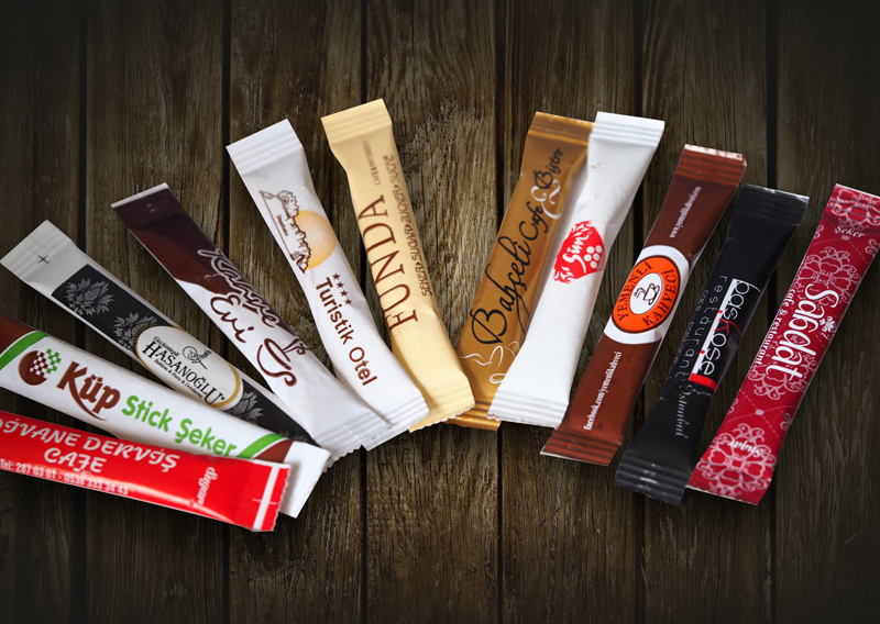 Stick Şeker Özel tasarım stick şeker çeşitleriyle markanızı temsil ediyoruz. Beyaz Şeker: 3gr, 4gr Esmer Şeker: 3gr, 4gr